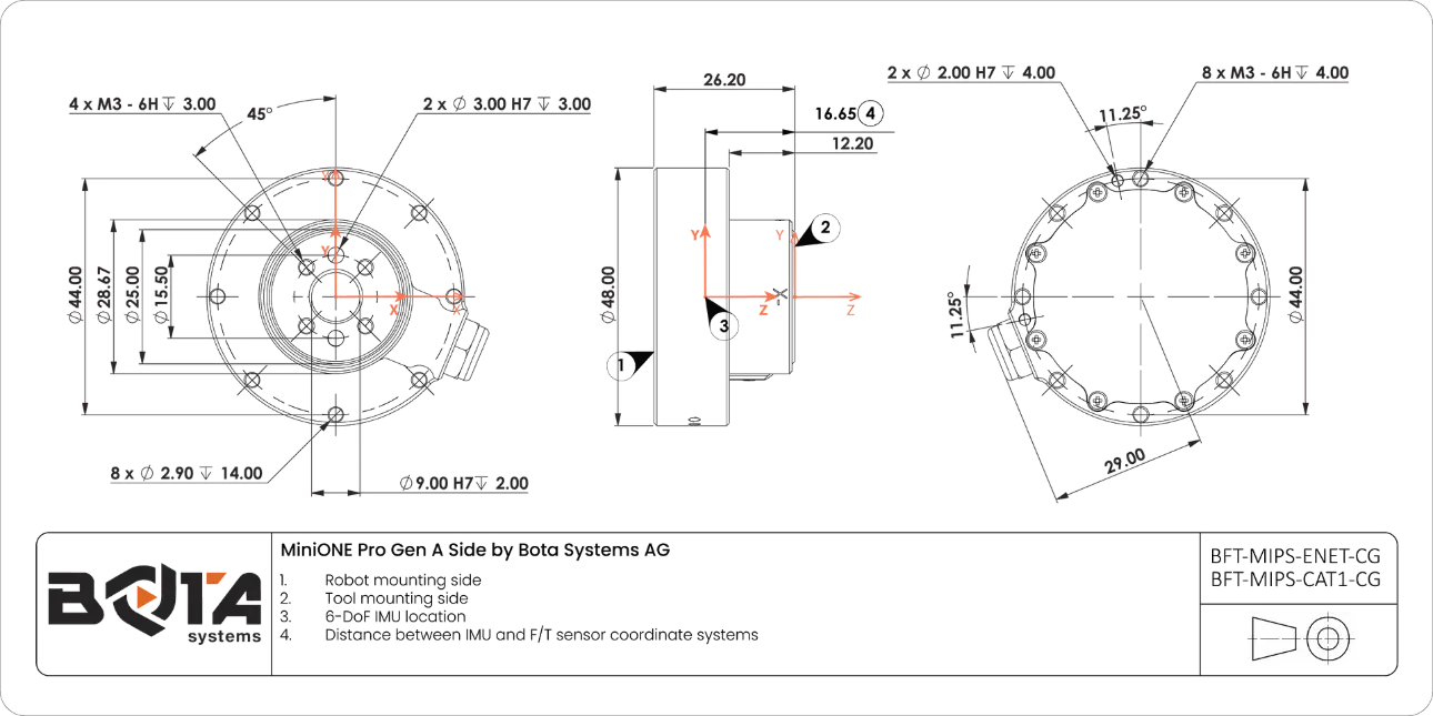 **Bota systems proprietary serial protocol over Ethernet port and serial communication ***Virtual COM port over USB. ****CANopen over EtherCAT.